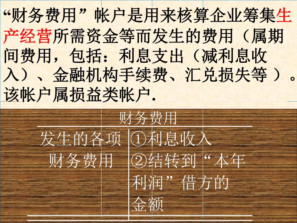 “财务费用”帐户是用来核算企业筹集生产经营所需资金等而发生的费用(属期间费用,包括:利息支出(减利息收入)、金融机构手续费、汇兑损失等 )。该帐户属损益类帐户. 财务费用 发生的各项 ①利息收入 财务费用 ②结转到“本年 利润”借方的 金额