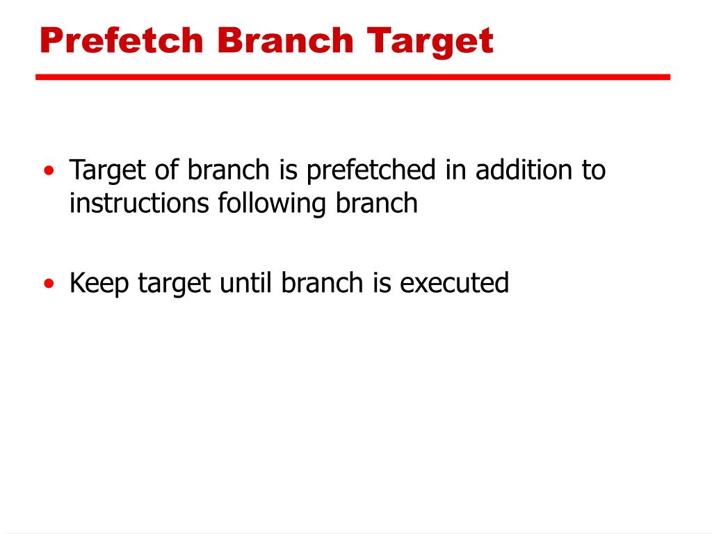 Prefetch Branch Target • Target of branch is prefetched in addition to instructions following branch • Keep target until branch is executed