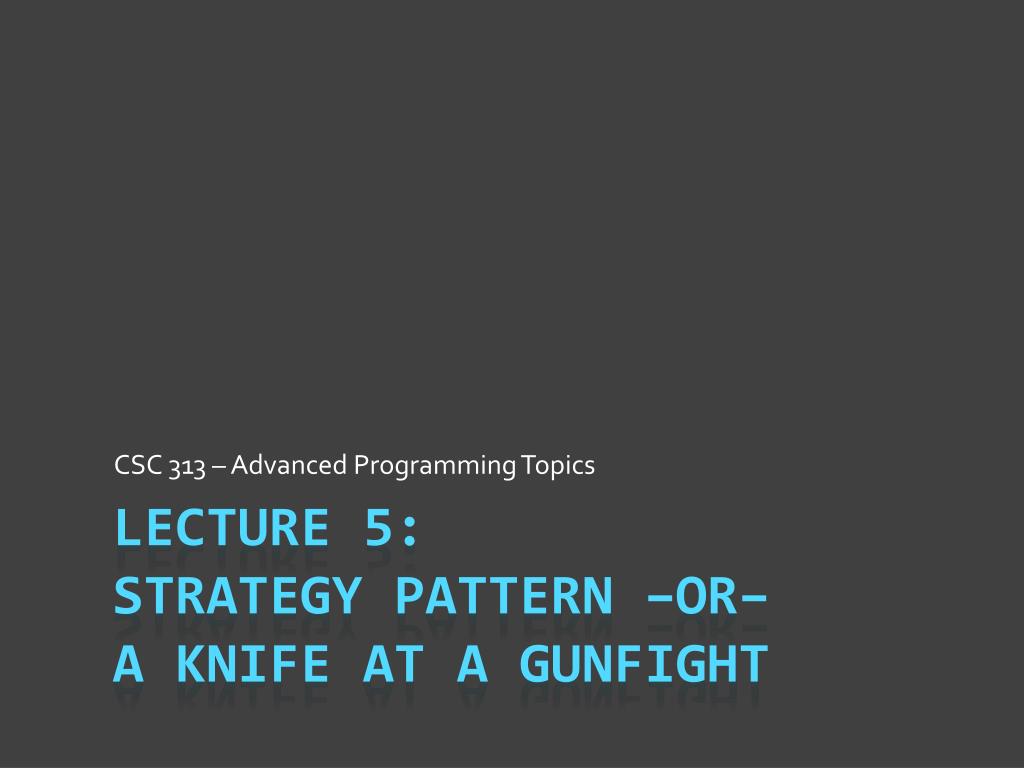 CSC 313 – Advanced Programming Topics Lecture 5:Strategy Pattern –or–a Knife At a Gunfight