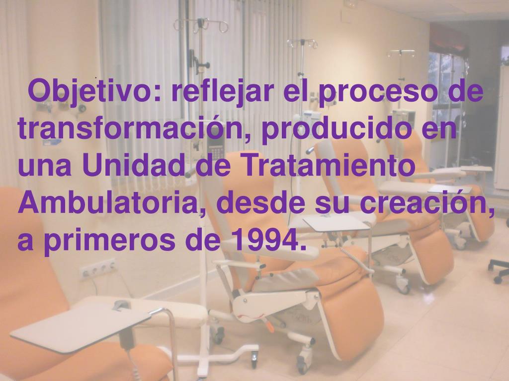 Objetivo: reflejar el proceso de transformación, producido en una Unidad de Tratamiento Ambulatoria, desde su creación, a primeros de 1994. .