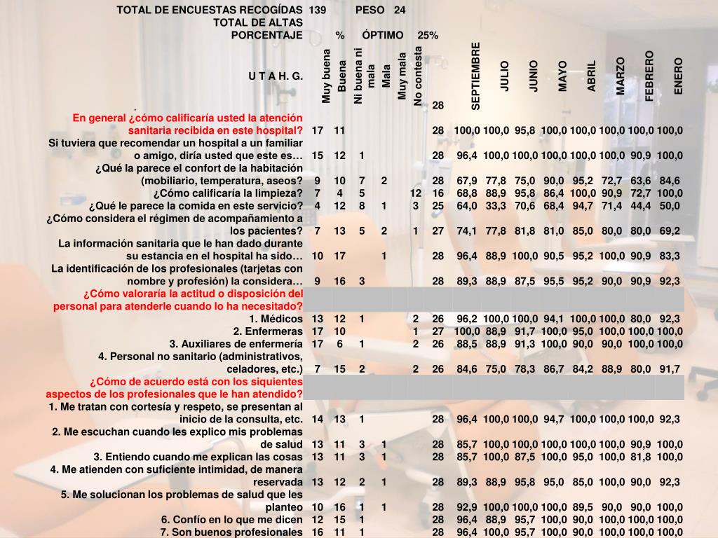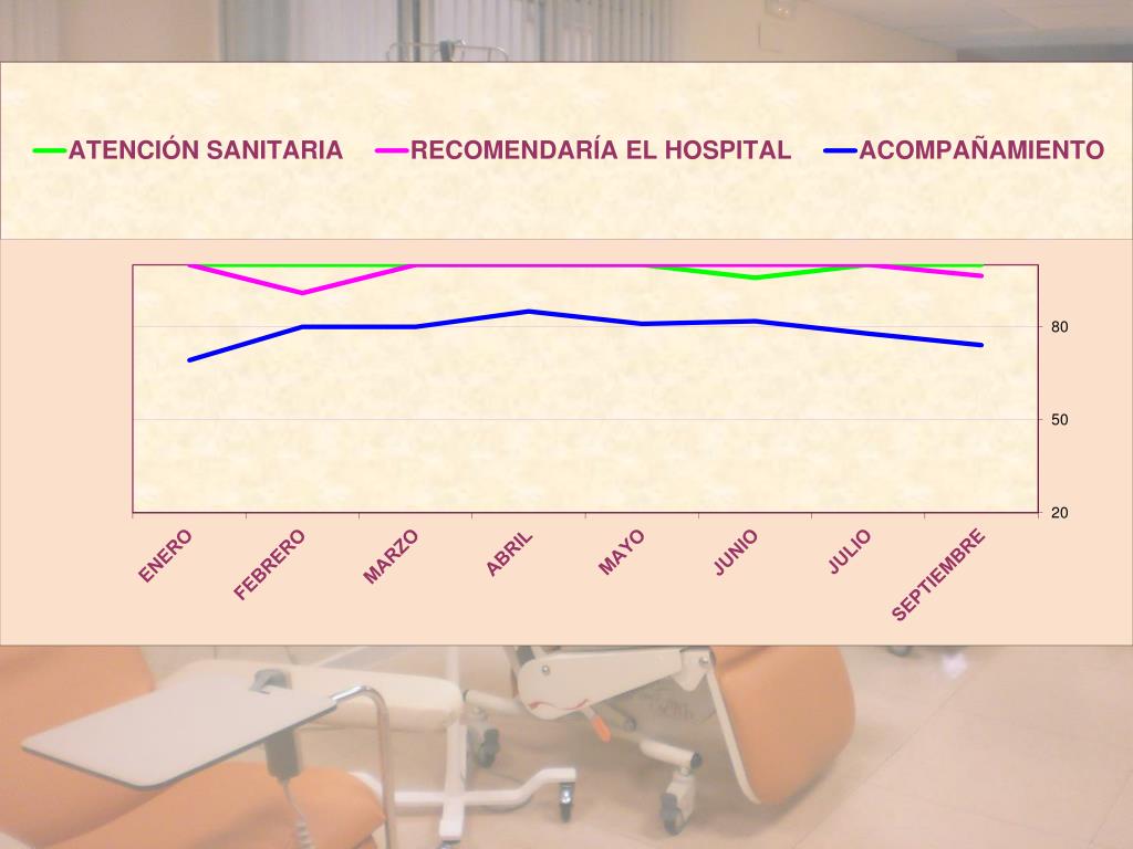 Aspectos de mejora • Conseguir una mayor privacidad. • Una sala de espera exclusivamente para pacientes que van a recibir terapia, con algunos sillones para los más vulnerables. • Un aseo separado para cada sexo • La clave de la WIFI, como a los enfermos ingresados. • Constatar el número de pacientes atendidos .