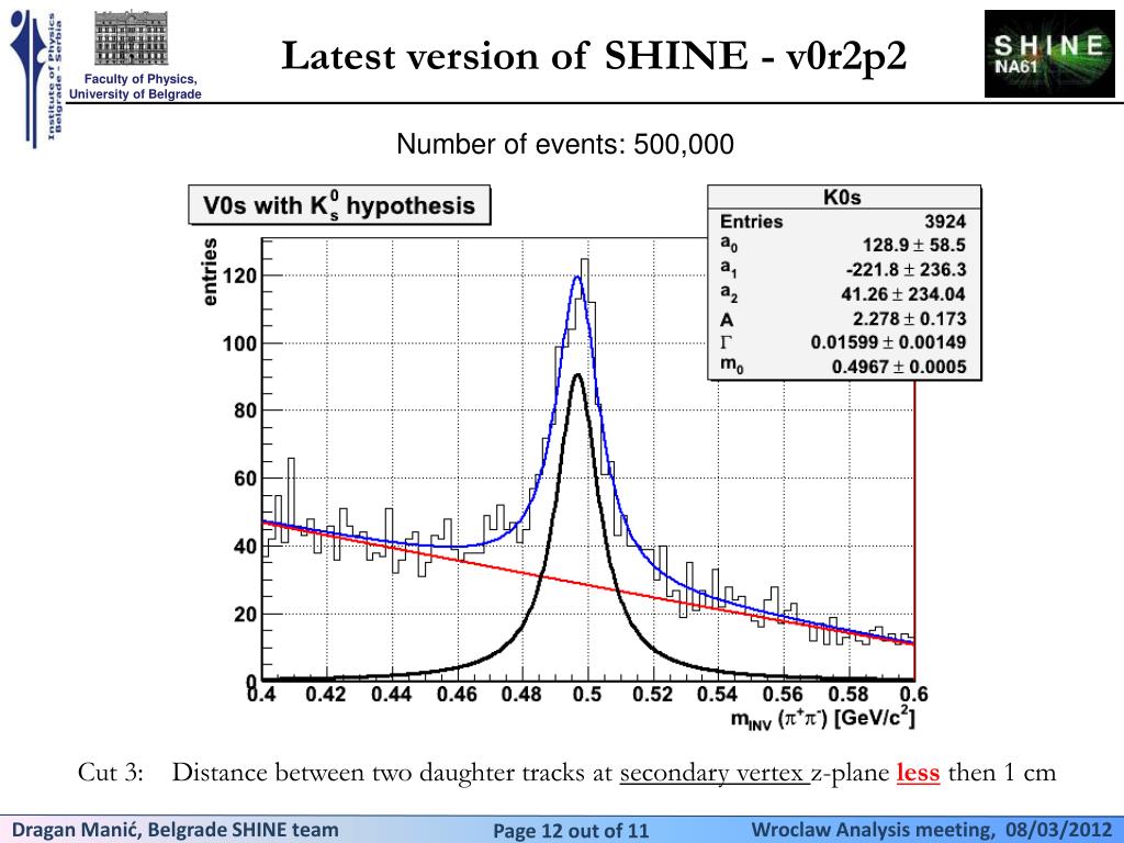 Latest version of SHINE - v0r2p2 Number of events: 500,000 Cut 3: Distance between two daughter tracks at secondary vertex z-plane lessthen 1 cm