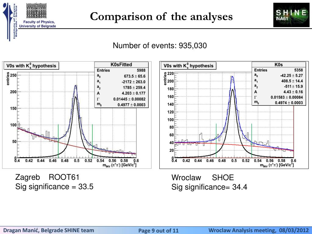 Comparison of the analyses Number of events: 935,030 Zagreb ROOT61 Sig significance = 33.5 Wroclaw SHOE Sig significance= 34.4
