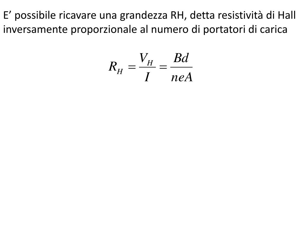 E’ possibile ricavare una grandezza RH, detta resistività di Hall inversamente proporzionale al numero di portatori di carica