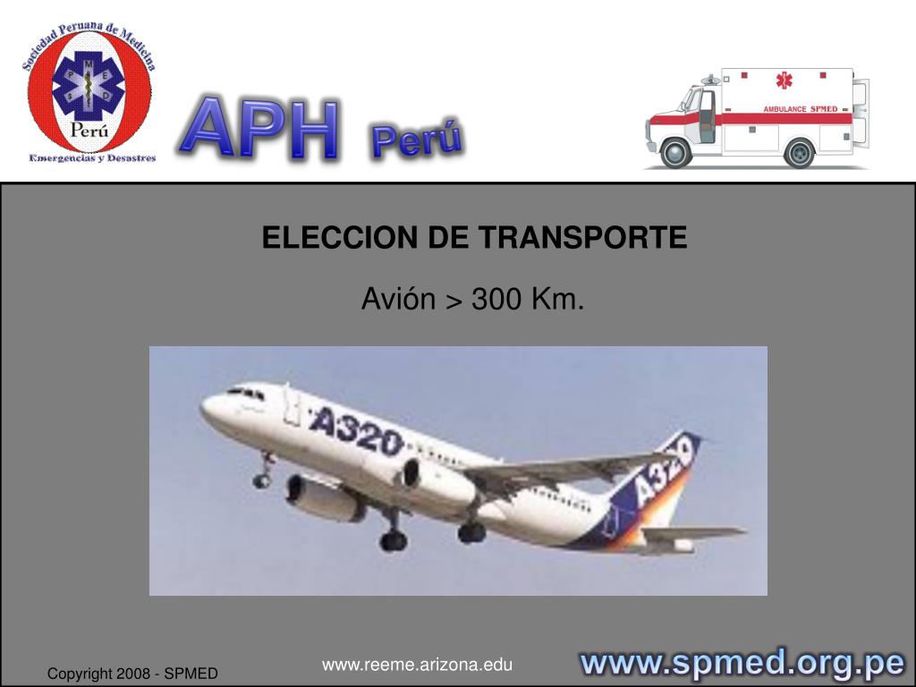 APHPerú ELECCION DE TRANSPORTE Avión > 300 Km. www.spmed.org.pe www.reeme.arizona.edu Copyright 2008 - SPMED