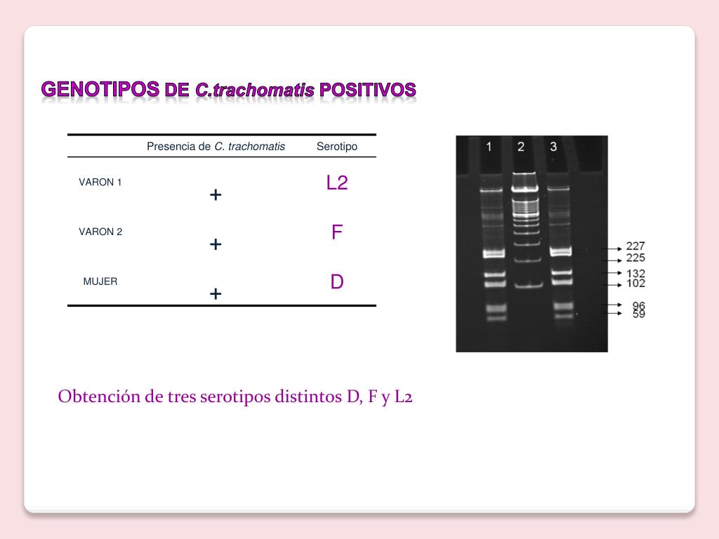 Genotipos de C.trachomatispositivos Obtención de tres serotipos distintos D, F y L2