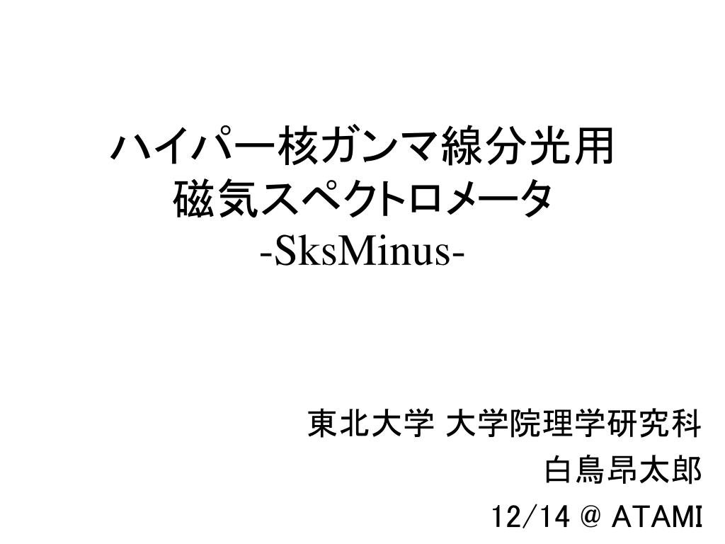 ハイパー核ガンマ線分光用磁気スペクトロメータ-SksMinus-ハイパー核ガンマ線分光用磁気スペクトロメータ-SksMinus- 東北大学 大学院理学研究科 白鳥昂太郎 12/14 @ ATAMI