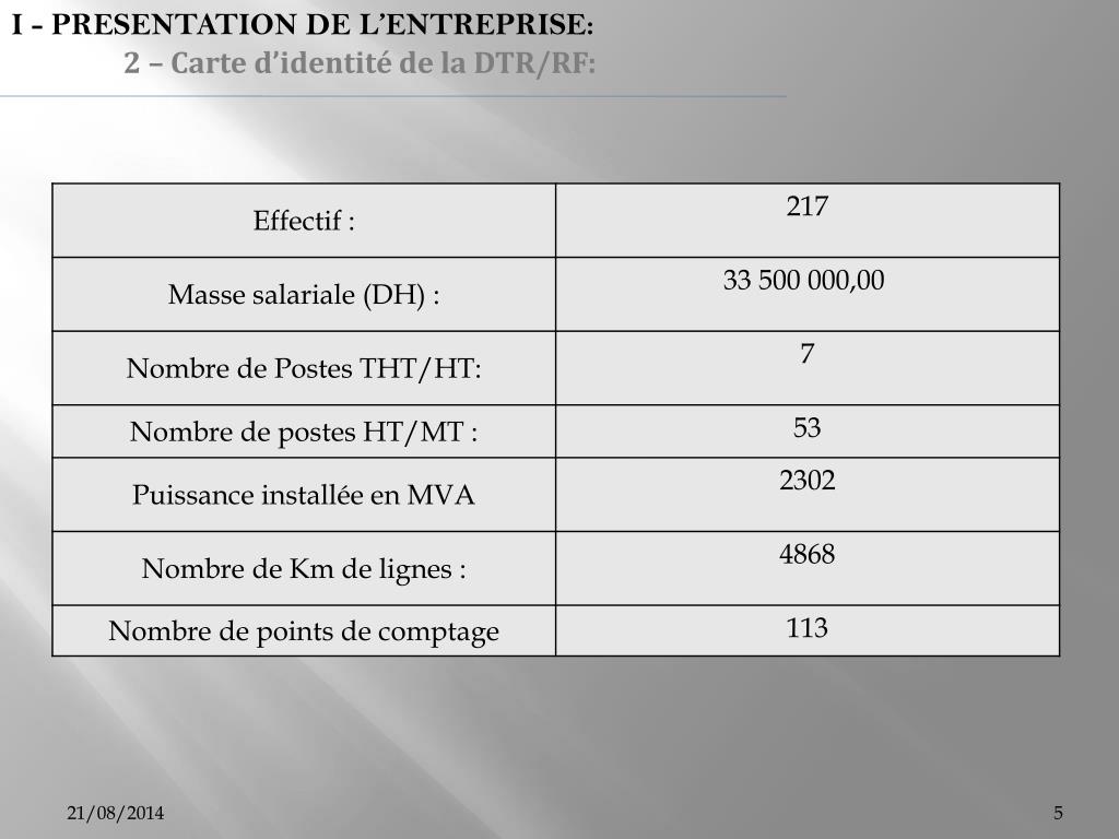I - PRESENTATION DE L’ENTREPRISE: 2 – Carte d’identité de la DTR/RF: