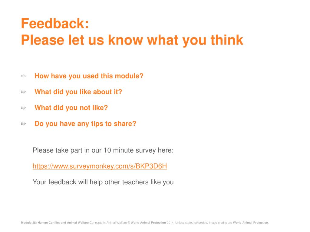 Feedback: Please let us know what you think • How have you used this module? • What did you like about it? • What did you not like? • Do you have any tips to share? Please take part in our 10 minute survey here: https://www.surveymonkey.com/s/BKP3D6H Your feedback will help other teachers like you