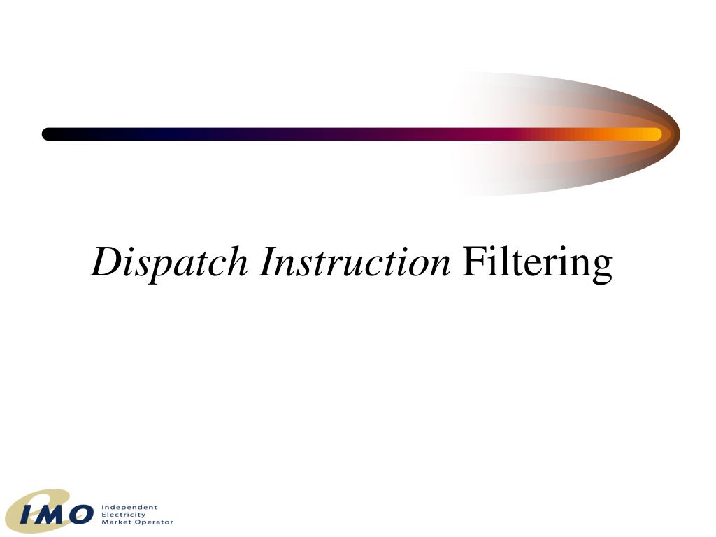 Existing Dispatch Filtering • Filter prevents sending out dispatch instructions for small changes in scheduled quantities • New dispatch instructions issued for provision of energy change from the previous dispatch instruction provided greater than the lesser of 2% of maximum offer/bid capability and 10 MW