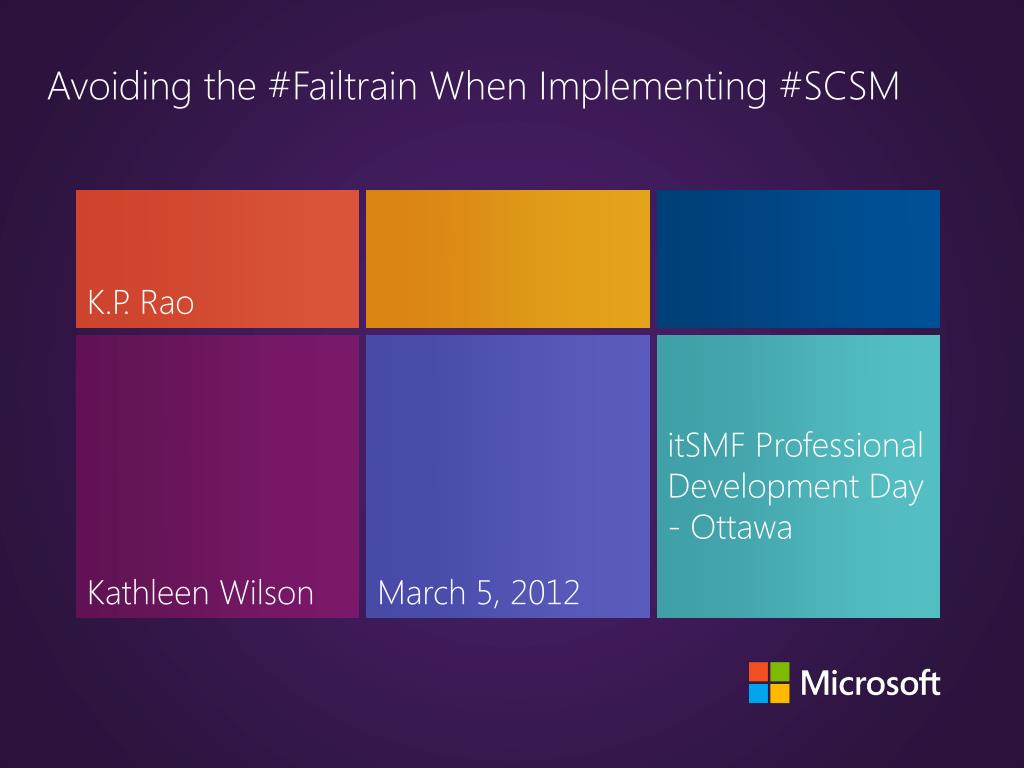 Avoiding the #Failtrain When Implementing #SCSM K.P. Rao Kathleen Wilson itSMF Professional Development Day - Ottawa March 5, 2012