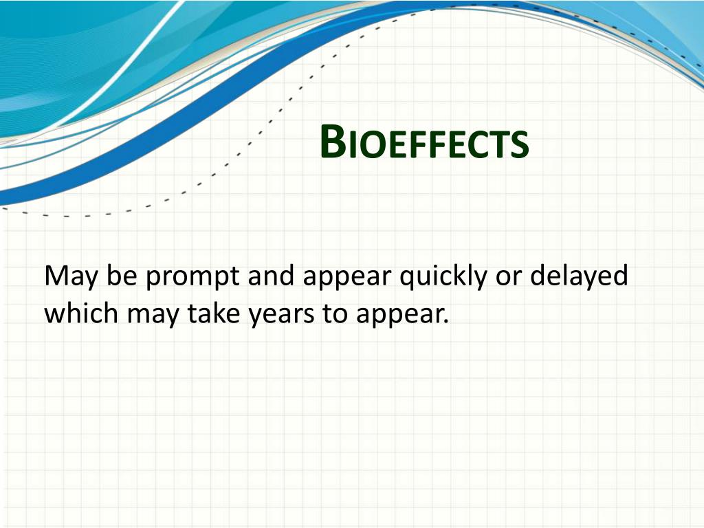 Bioeffects May be prompt and appear quickly or delayed which may take years to appear.