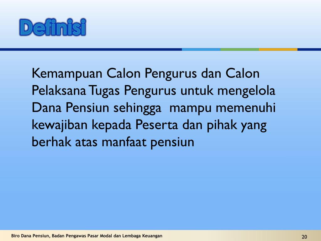 Definisi Kemampuan Calon Pengurus dan Calon Pelaksana Tugas Pengurus untuk mengelola Dana Pensiun sehingga mampu memenuhi kewajiban kepada Peserta dan pihak yang berhak atas manfaat pensiun