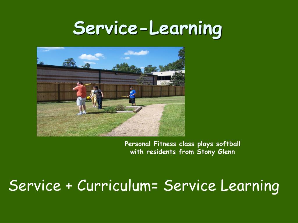 Service-Learning Personal Fitness class plays softball with residents from Stony Glenn Service + Curriculum= Service Learning