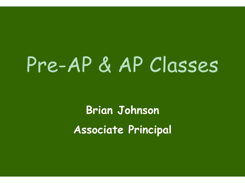 Pre-AP & AP Classes Brian Johnson Associate Principal