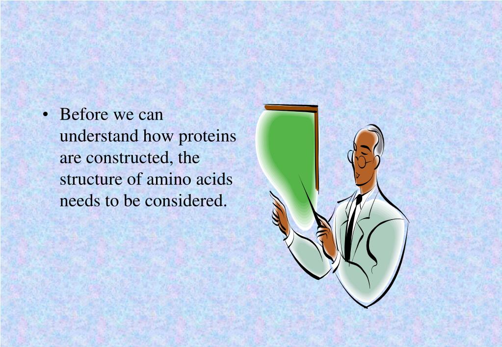 Before we can understand how proteins are constructed, the structure of amino acids needs to be considered.