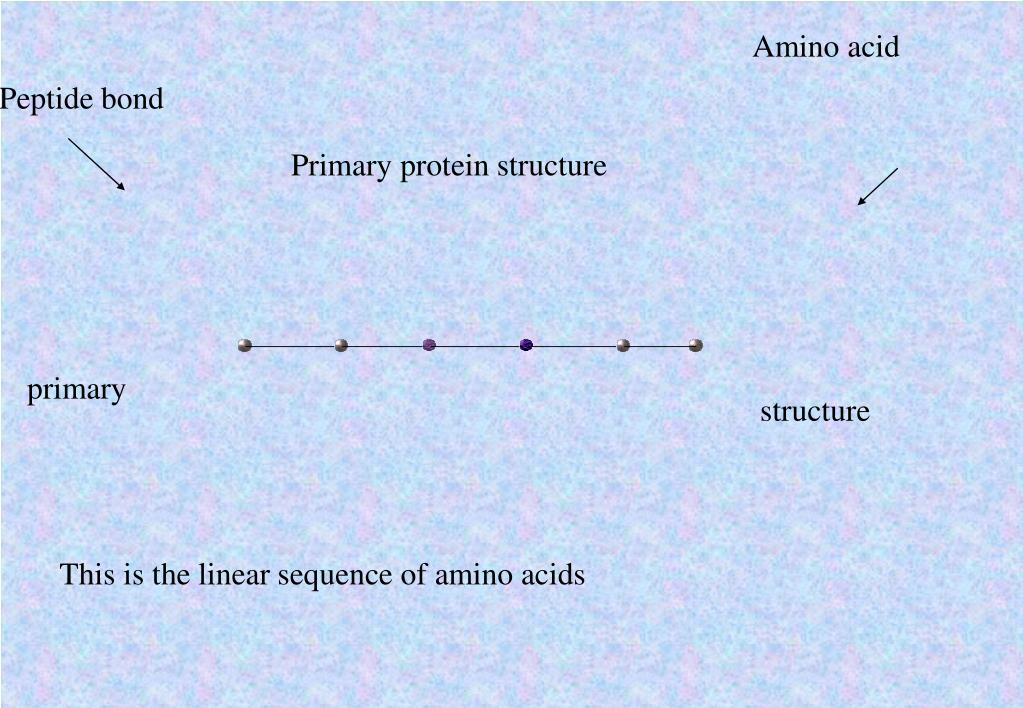 Amino acid Peptide bond Primary protein structure primary structure This is the linear sequence of amino acids
