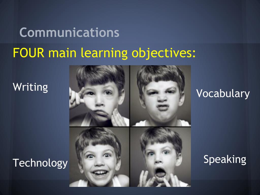 Communications FOUR main learning objectives: Writing Technology Vocabulary Speaking