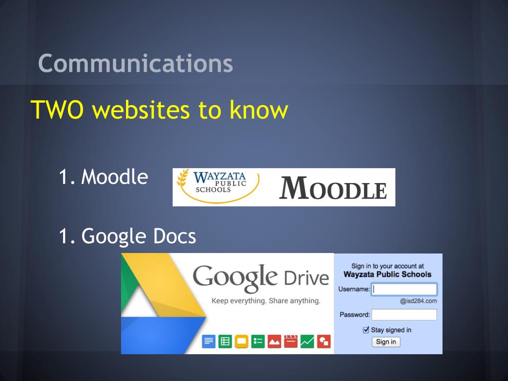 Communications TWO websites to know • Moodle • Google Docs