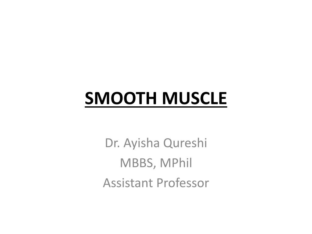 SMOOTH MUSCLE . Dr. Ayisha Qureshi MBBS, MPhil Assistant Professor. CLASSIFICATION OF SMOOTH MUSCLES. UNITARY/ SINGLE UNIT/SYNCYTIAL/VISCERAL Muscles of visceral organs .e.g. GIT, uterus, ureters & some of the smaller blood vessels. Form a sheet or bundles of tissue.