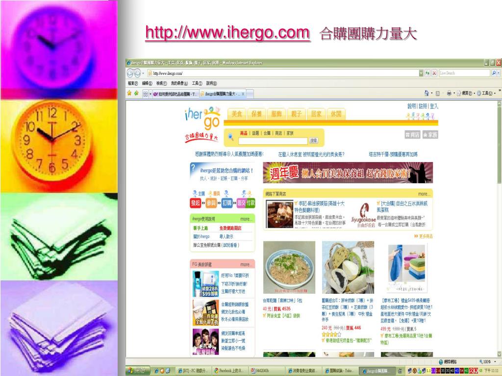 參考資料來源 • http://www.obuy.tw全買網 • http://www.ihergo.com合購團購力量大 • http://taiwan.taobao.com/淘寶網 • 中國經濟網 http://big5.ce.cn/cysc/tech/07hlw/guonei/200904/11/t20090411_18771748.shtml 雅虎搜尋