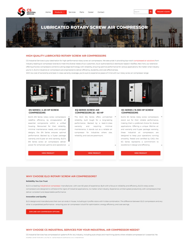 CS Industrial Services offers ELGi rotary screw air compressors in New York. Best in class quality and warranty coverage with low ownership costs<br>