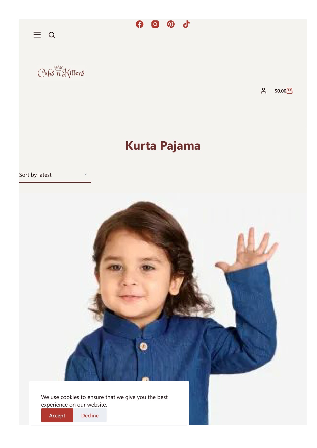 $0.00 Kurta Pajama Sort by latest We use cookies to ensure that we give you the best experience on our website. Accept Decline