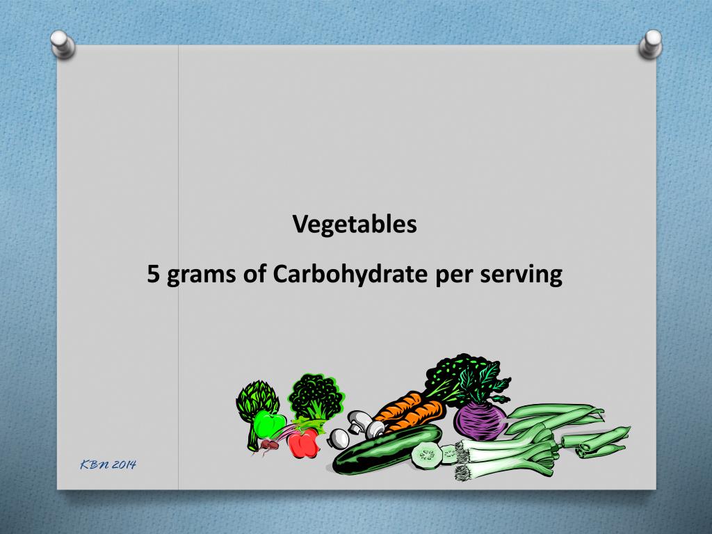 Vegetables 5 grams of Carbohydrate per serving KBN 2014