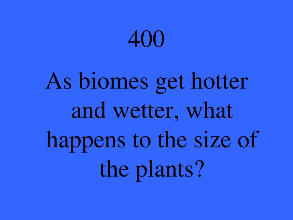 400 As biomes get hotter and wetter, what happens to the size of the plants?