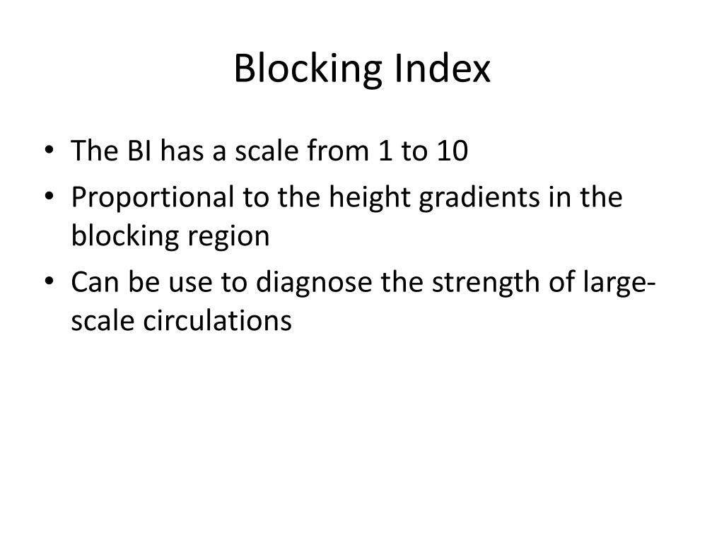 Blocking Index • The BI has a scale from 1 to 10 • Proportional to the height gradients in the blocking region • Can be use to diagnose the strength of large-scale circulations