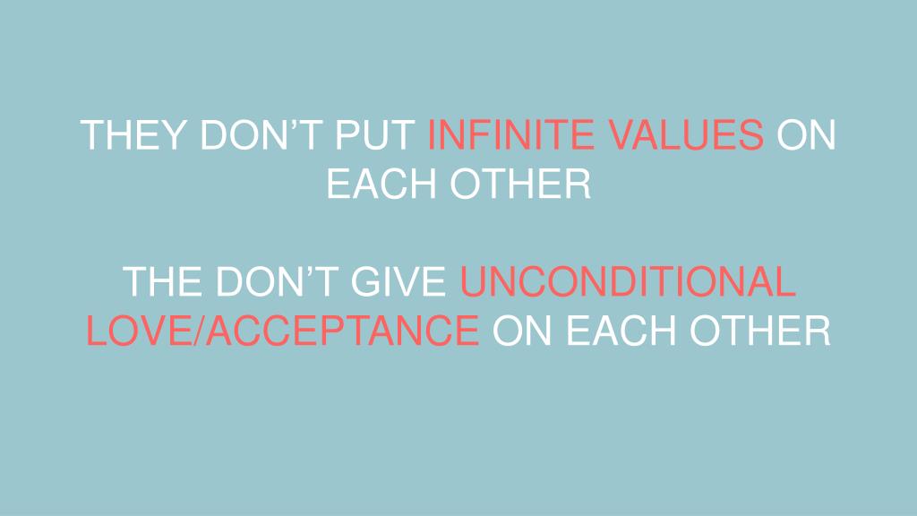 They don’t put infinite values on each other The don’t give unconditional love/Acceptance on each other