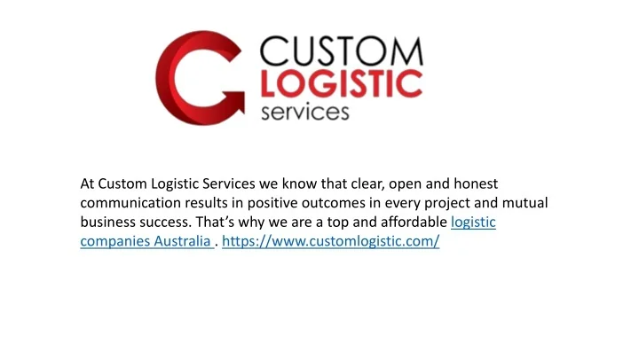 <br>Customs Logistic Services (CLS) is a leading logistics company based in Brisbane, Australia. We have built a solid reputation based on our dedication to delivering superior customer care and our comprehensive range of logistics services