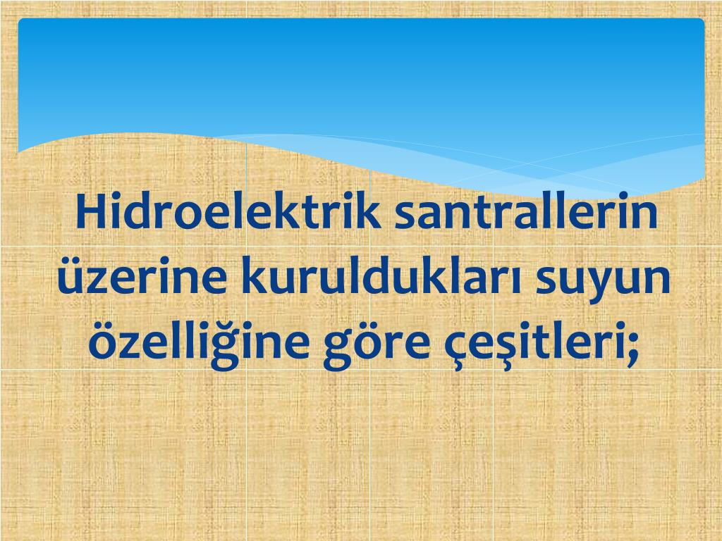 Hidroelektrik santrallerin üzerine kuruldukları suyun özelliğine göre çeşitleri;