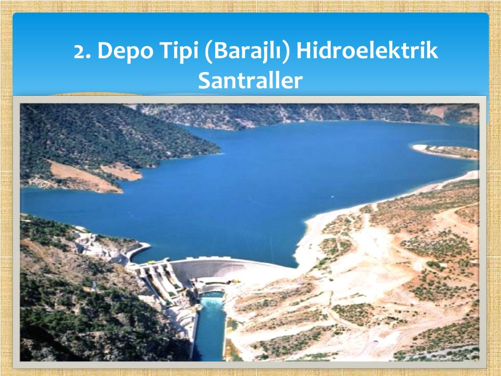 Türkiye'de bugüne kadar uluslararası ölçütlere göre baraj niteliğinde olan 504 adet depolama tesisinin yapımı gerçekleştirilmiştir. Atatürk, Keban, Altınkaya, Karakaya hidroelektrik santralleri ülkemizin önemli depo tipi (barajlı) santrallerindendir.
