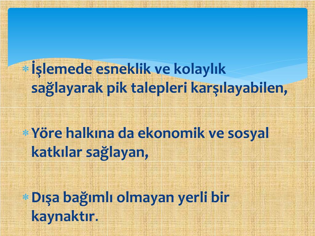 İşlemede esneklik ve kolaylık sağlayarak pik talepleri karşılayabilen, Yöre halkına da ekonomik ve sosyal katkılar sağlayan, Dışa bağımlı olmayan yerli bir kaynaktır.