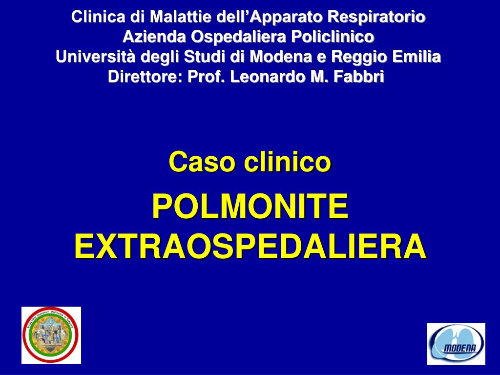 Clinica di Malattie dell’Apparato Respiratorio Azienda Ospedaliera Policlinico Università degli Studi di Modena e Reggio Emilia Direttore: Prof. Leonardo M. Fabbri Caso clinico POLMONITE EXTRAOSPEDALIERA