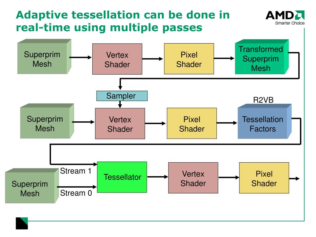 Input Assembler Tessellator Vertex Shader Rasterizer Pixel Shader AMD Hardware Tessellator Memory / Resources Memory / Resources Output Merger