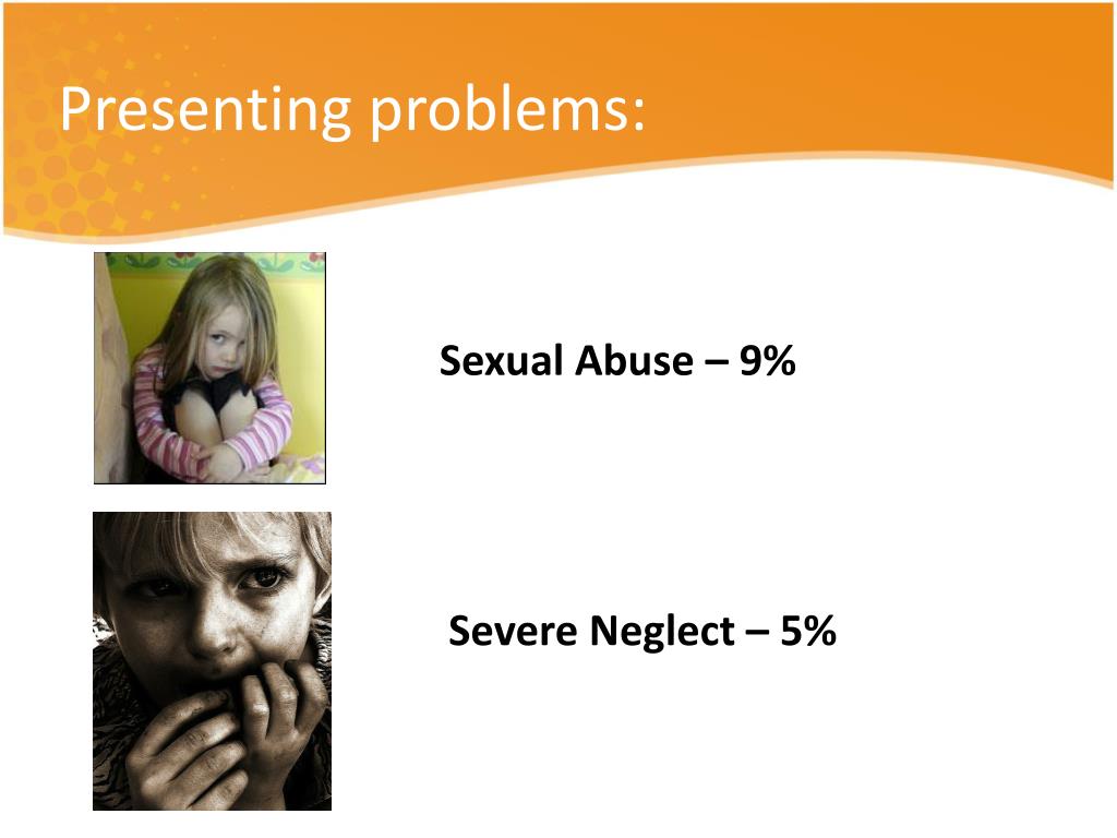 Presenting problems: Severe Neglect – 5% Sexual Abuse – 9%