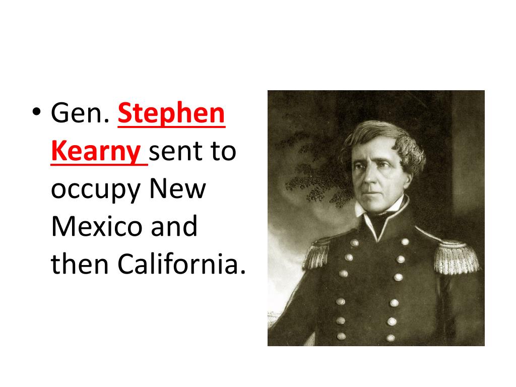 Gen. Stephen Kearny sent to occupy New Mexico and then California.