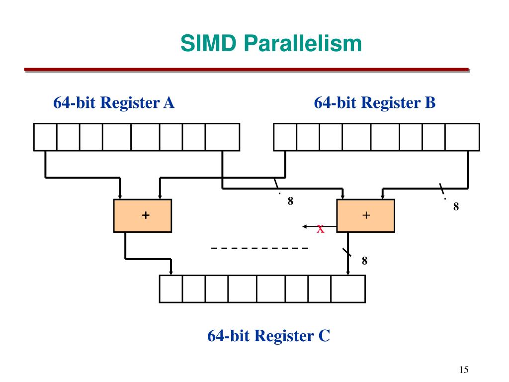 64-bit Register A 64-bit Register B 8 8 + + x 8 64-bit Register C SIMD Parallelism