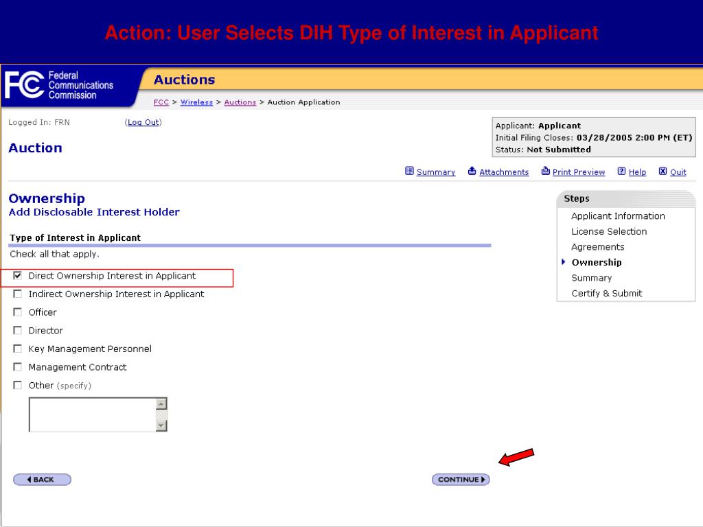 User Specifies DIH Percent of Interest Held in Applicant and Jurisdiction of Formation