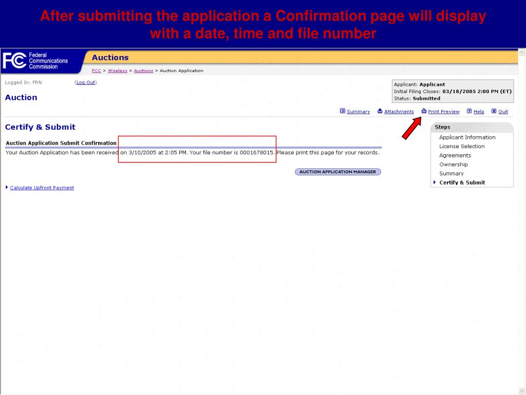 A Summary Screen displays. The Applicant can navigate to the different sections to view or edit Information The system will check for errors before certifying and submitting