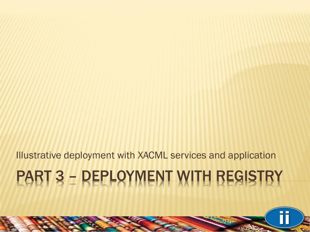 Illustrative deployment with XACML services and application Part 3 – Deployment WITH Registry