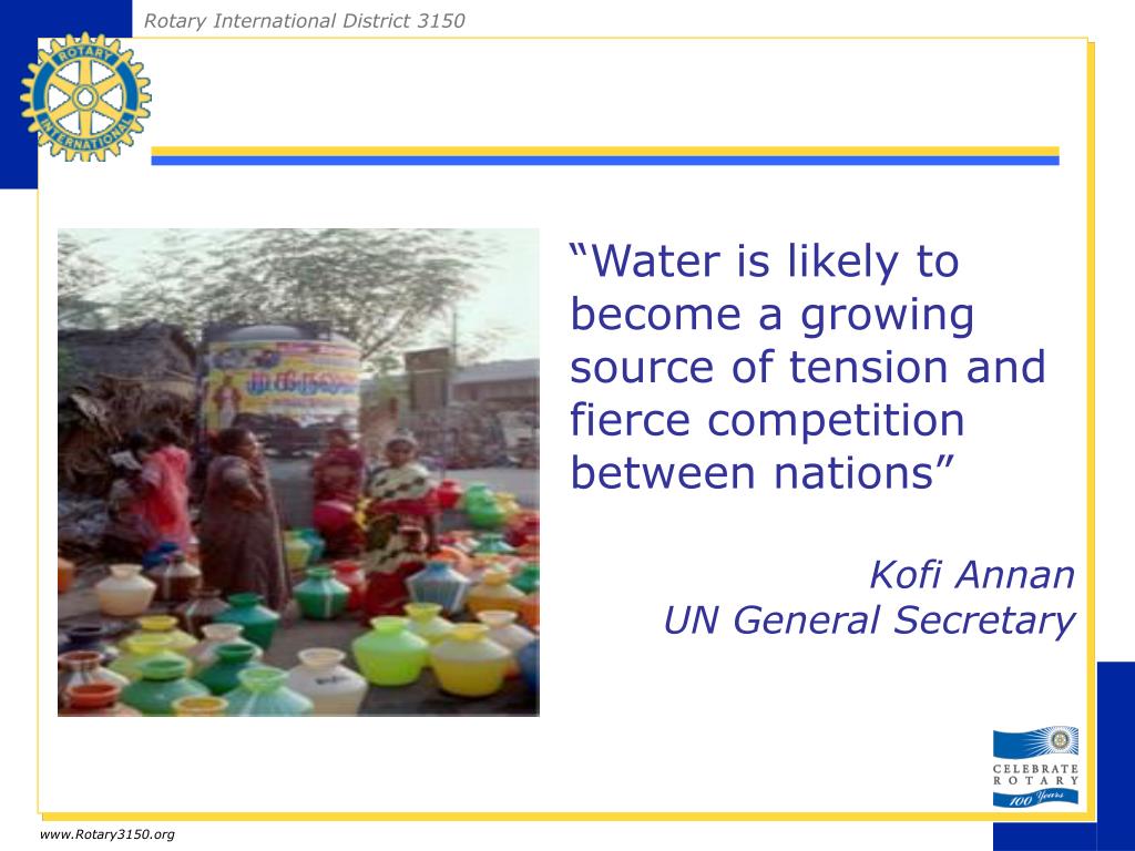 “Water is likely to become a growing source of tension and fierce competition between nations” Kofi Annan UN General Secretary www.Rotary3150.org