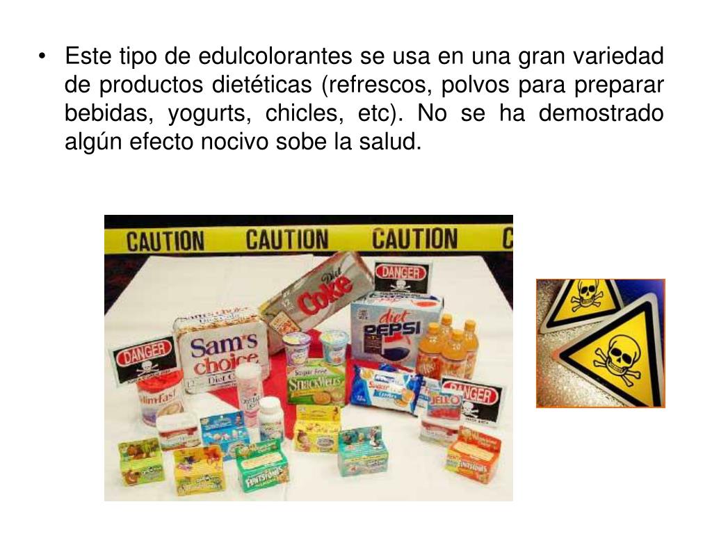 Este tipo de edulcolorantes se usa en una gran variedad de productos dietéticas (refrescos, polvos para preparar bebidas, yogurts, chicles, etc). No se ha demostrado algún efecto nocivo sobe la salud.