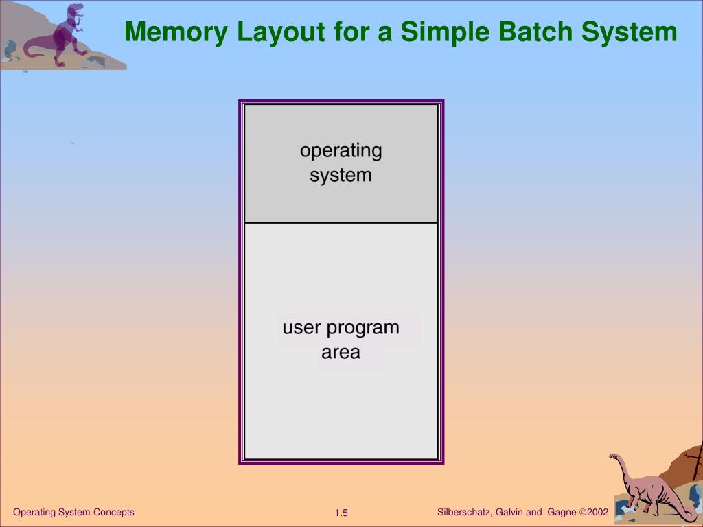 Multiprogrammed Batch Systems Several jobs are kept in main memory at the same time, and the CPU is multiplexed among them. Operating System Concepts