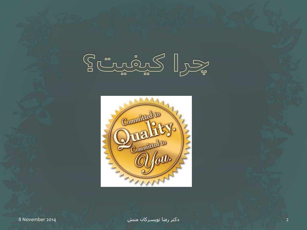 چرا کیفیت؟ دکتر رضا تویسرکان منش