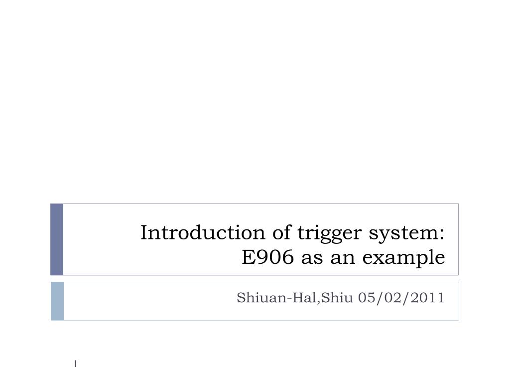 Introduction of trigger system: E906 as an example. Shiuan-Hal,Shiu 05/02/2011 . Contents. Introduction Why we need trigger? An example of a trigger system in our daily life Trigger structure Hardware trigger Software trigger Trend of trigger system The E906 Trigger System.