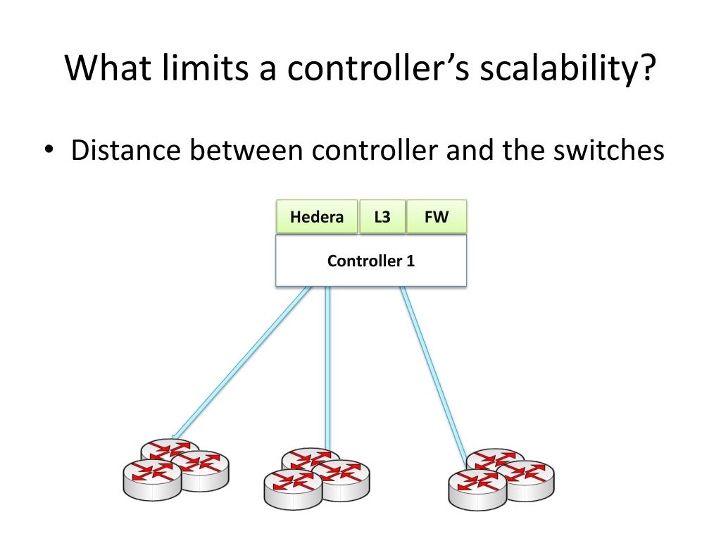 What limits a controller’s scalability? • Distance between controller and the switches Hedera L3 FW Controller 1