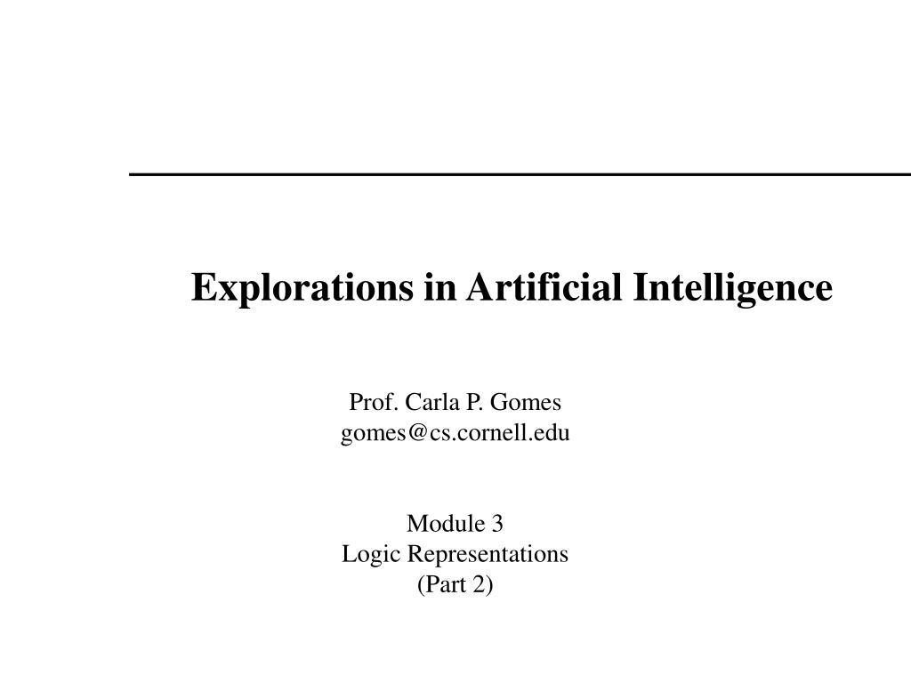 Explorations in Artificial Intelligence Prof. Carla P. Gomes gomes@cs.cornell.edu Module 3 Logic Representations (Part 2)